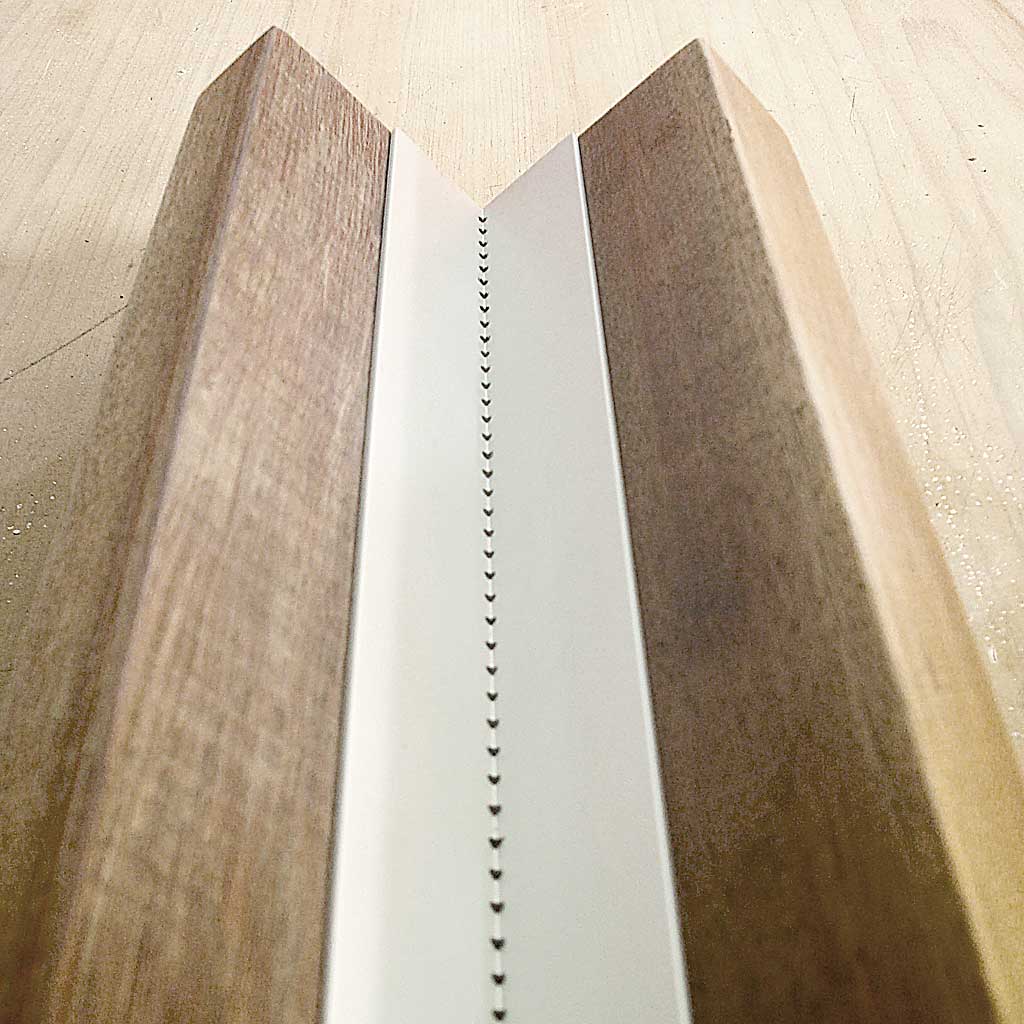 Inicie colando os triângulos. A marcação de 2cm feita anteriormente, na parte interna e externa, será a guia na hora da colagem das peças.